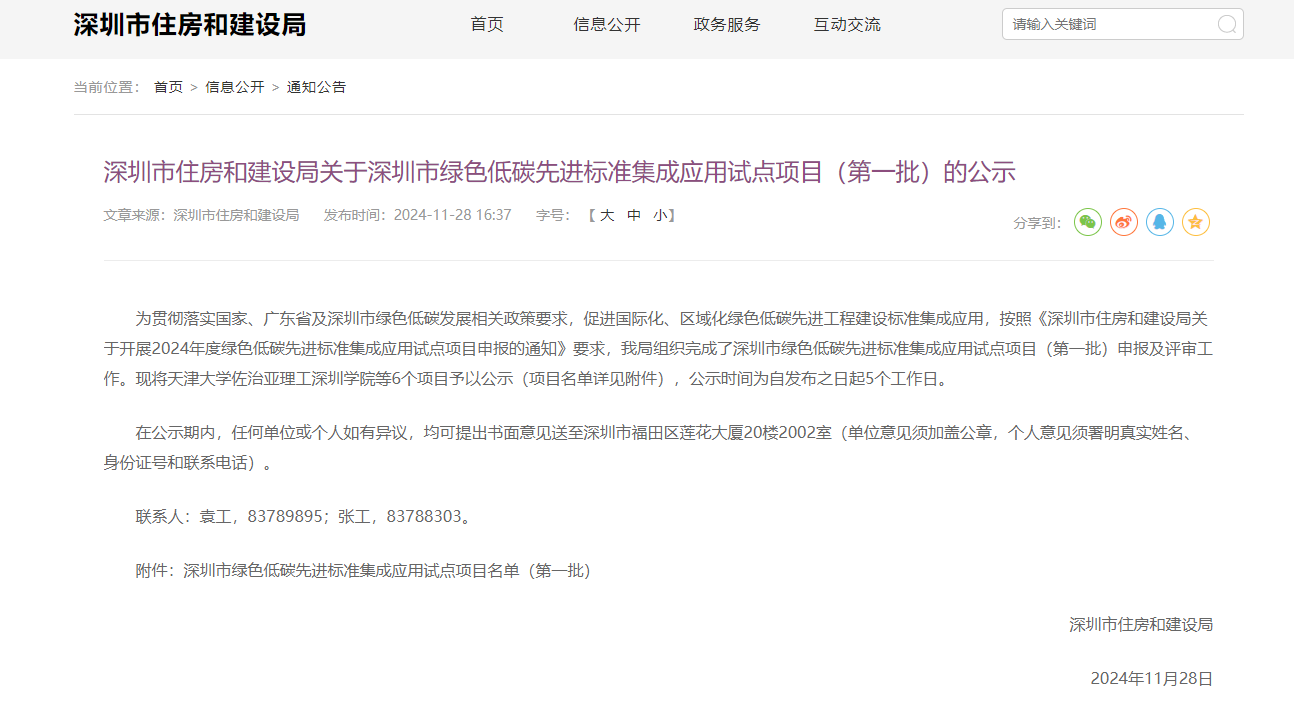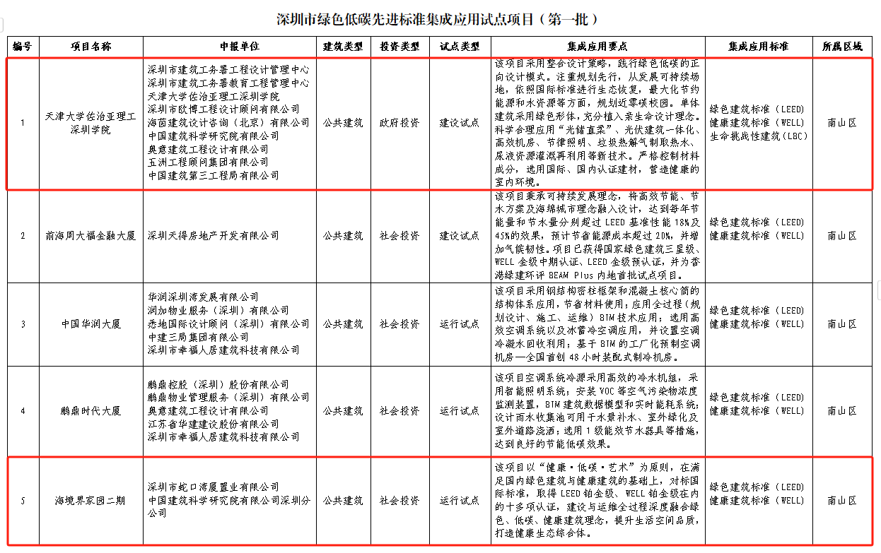 近日,深圳市住房和建設局發布了深圳市綠色低碳先進標準集成應用試點項目(第一批)公示,中國建研院深圳分公司兩個項目成功入選,在本次公示的六個試點項目中數量處于領先地位,充分體現了中國建研院深圳分公司在大灣區綠色低碳發展領域的品牌影響力。