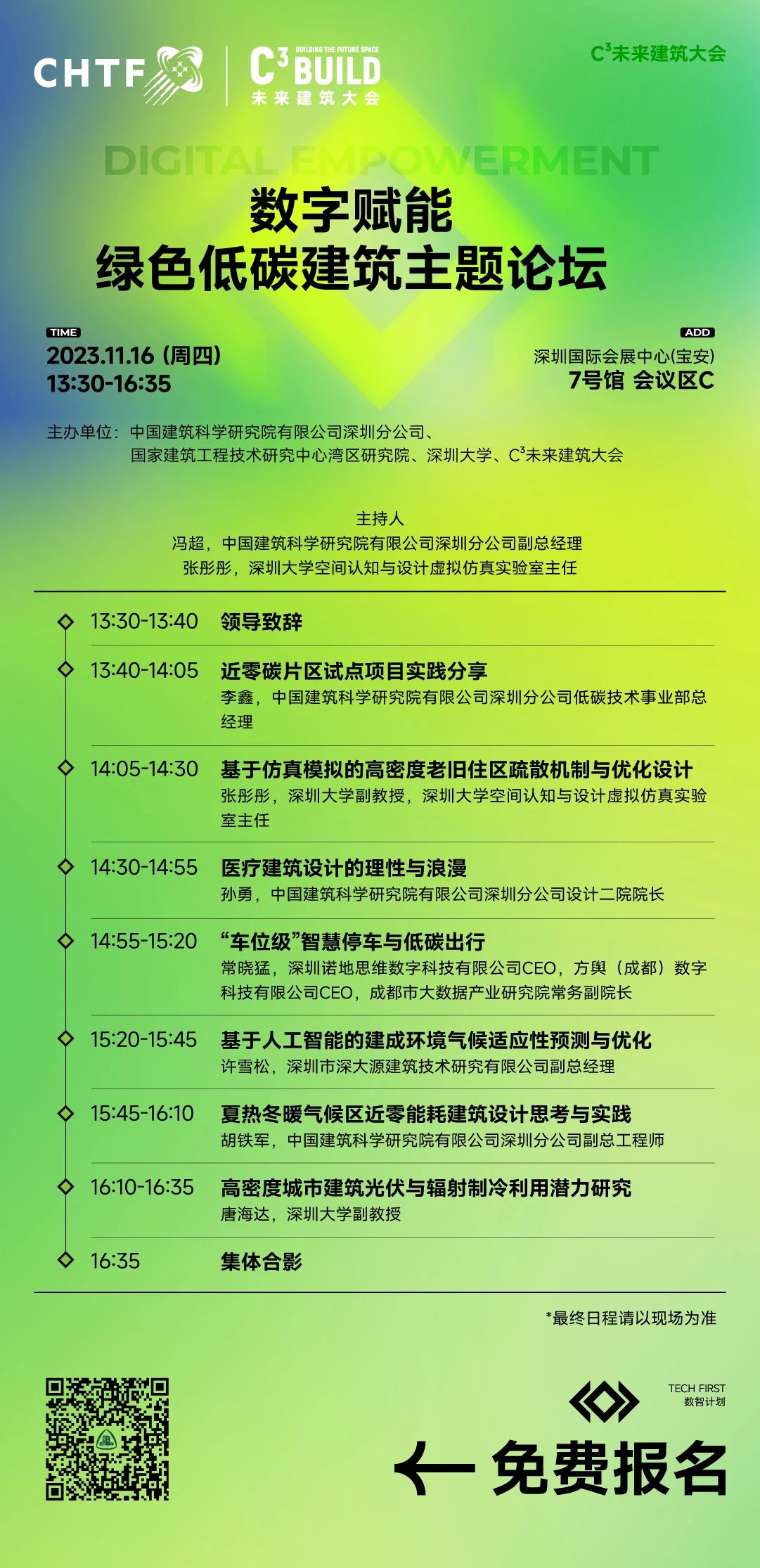 高交會-C3未來建筑大會-數字賦能綠色低碳建筑主題論壇,最新議程搶先看