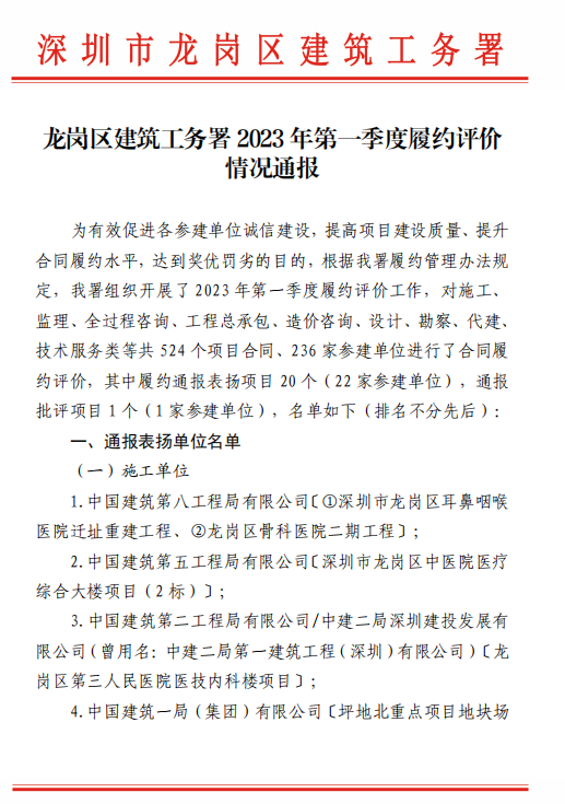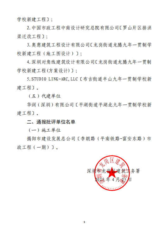 近日,中國建研院深圳分公司因在“寶龍街道南約九年一貫制學校新建工程”上優質的設計質量和設計服務,在236家參建單位評比中脫穎而出,被評為優秀履約單位并予以通報表揚。