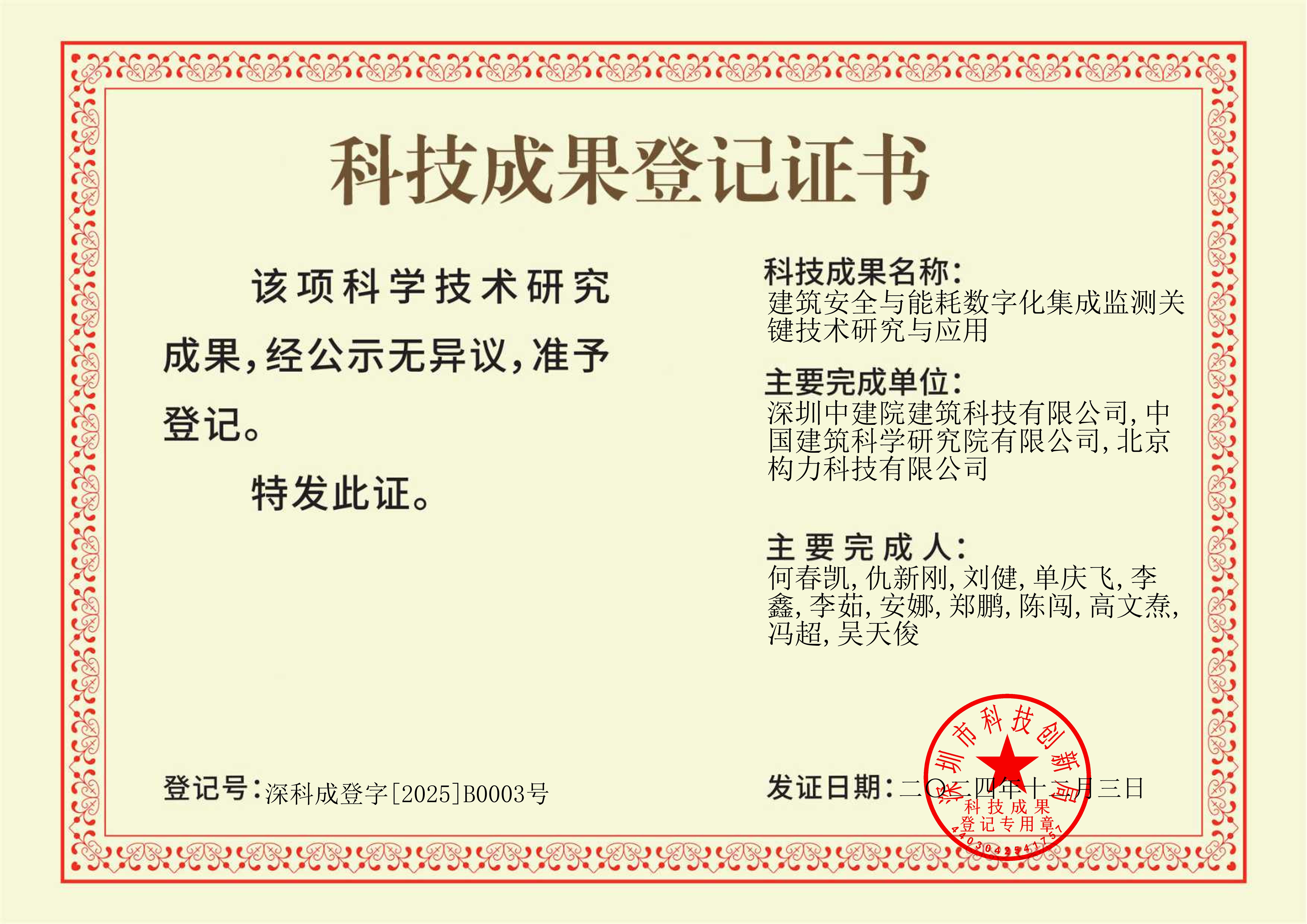 ??2025年1月20日,國家建筑工程技術(shù)研究中心發(fā)布15項創(chuàng)新成果,中國建研院深圳分公司并國家建筑工程技術(shù)研究中心灣區(qū)研究院(以下簡稱“灣區(qū)研究院”)的科技成果“建筑安全與能耗數(shù)字化集成監(jiān)測關(guān)鍵技術(shù)”成功入選。