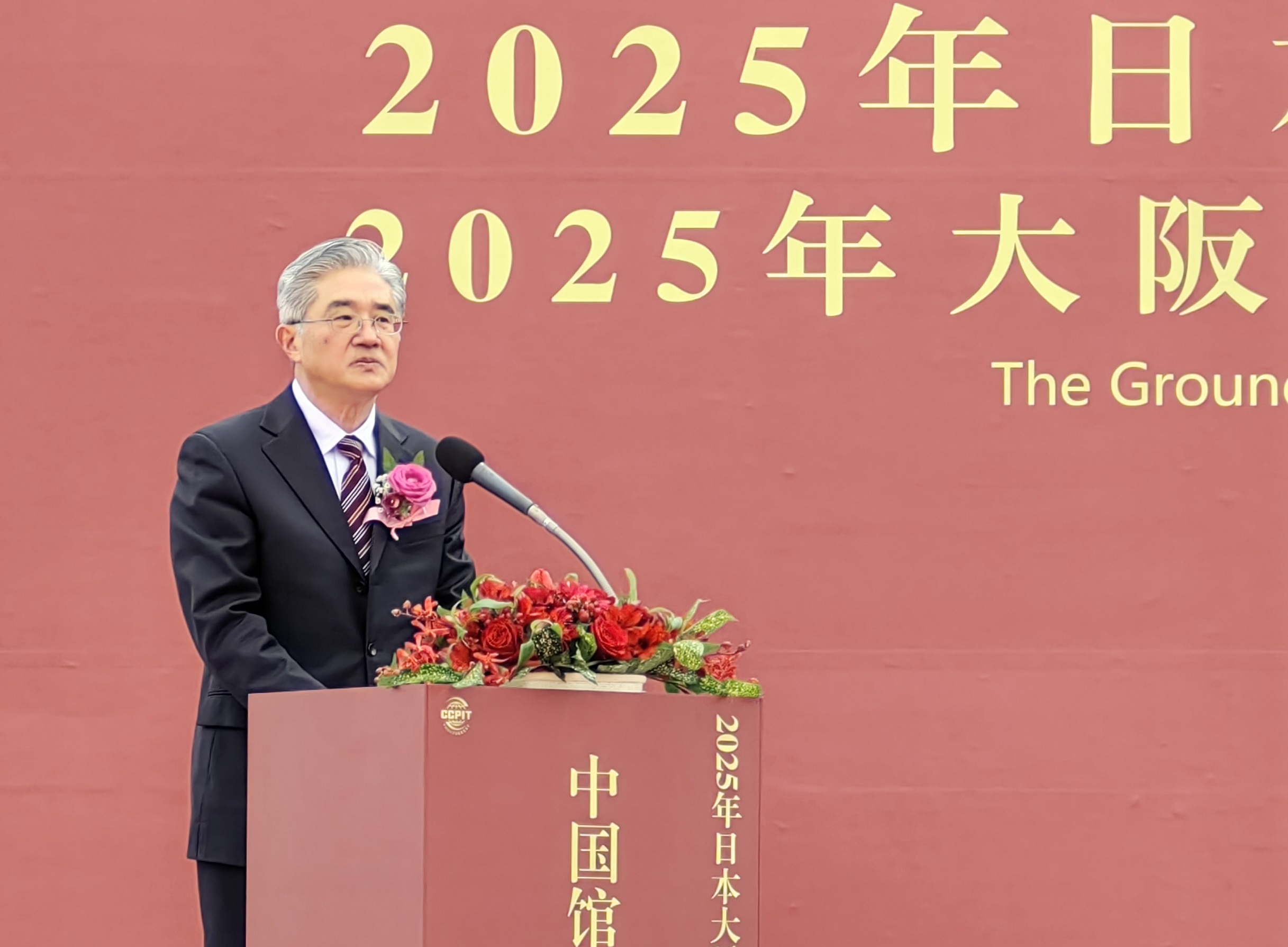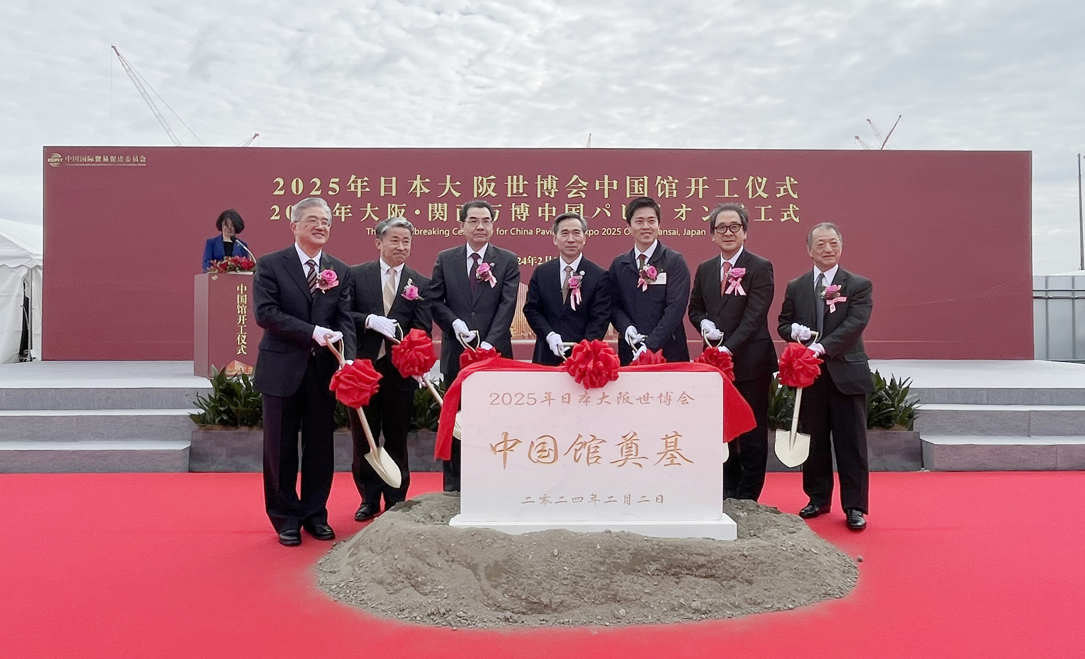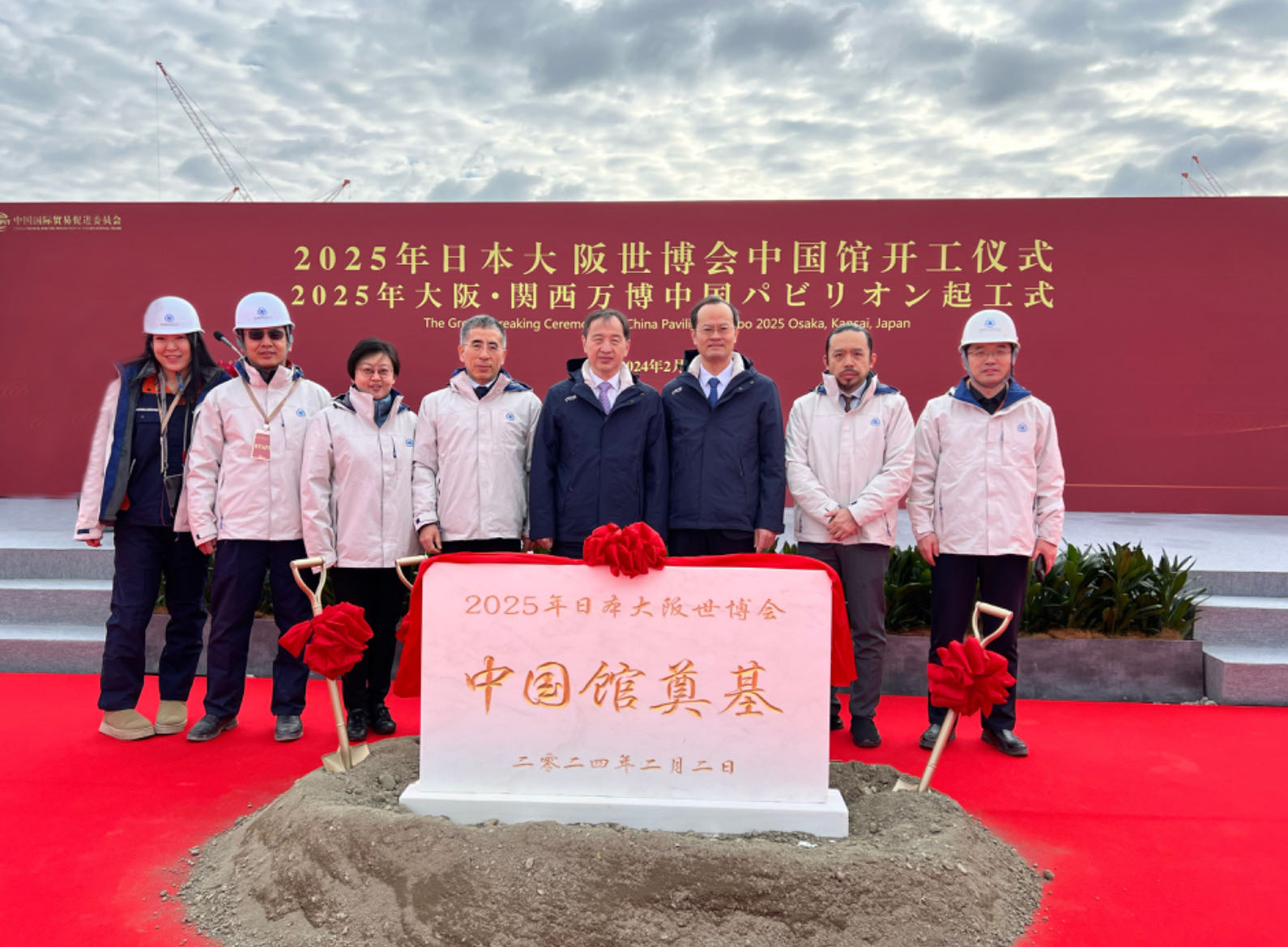 2月2日上午,“2025年日本大阪世博會中國館”開工儀式在大阪濱水夢洲世博園區隆重舉行。中國貿促會會長任鴻斌,中國駐日本大使吳江浩,中國駐日本大阪總領事薛劍,中國駐日本大使館經濟商務公使宋耀明,日本大阪府知事吉村洋文,日本世博協會事務總長石毛博行,日本外務省關西擔當大使姬野勉,中國建研院黨委書記、董事長王俊,黨委委員、副總經理肖從真等出席儀式。