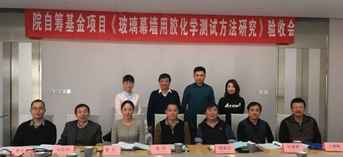 2017年1月9日,由我院檢測(cè)中心承擔(dān)的院自籌應(yīng)用研究課題“玻璃幕墻用膠化學(xué)測(cè)試方法研究”在北京順利通過(guò)驗(yàn)收。本次驗(yàn)收委員會(huì)由中國(guó)建筑標(biāo)準(zhǔn)設(shè)計(jì)研究院顧泰昌教授級(jí)高工、中國(guó)建筑金屬結(jié)構(gòu)協(xié)會(huì)黃圻高工、中國(guó)建筑裝飾協(xié)會(huì)邱建輝高工、中國(guó)建筑金屬結(jié)構(gòu)協(xié)會(huì)鋁門(mén)窗幕墻委員會(huì)董紅高工、北京德宏幕墻工程技術(shù)科研中心王德勤教授級(jí)高工、北京中新方建筑科技研究中心劉忠偉教授級(jí)高工、山東大學(xué)魯在君教授組成,由顧泰昌擔(dān)任主任委員,黃圻和邱建輝擔(dān)任副主任委員。院科技處程巖副研究員、院檢測(cè)中心張仁瑜副主任、課題驗(yàn)收專(zhuān)家及課題組成員等共14人參加了會(huì)議。